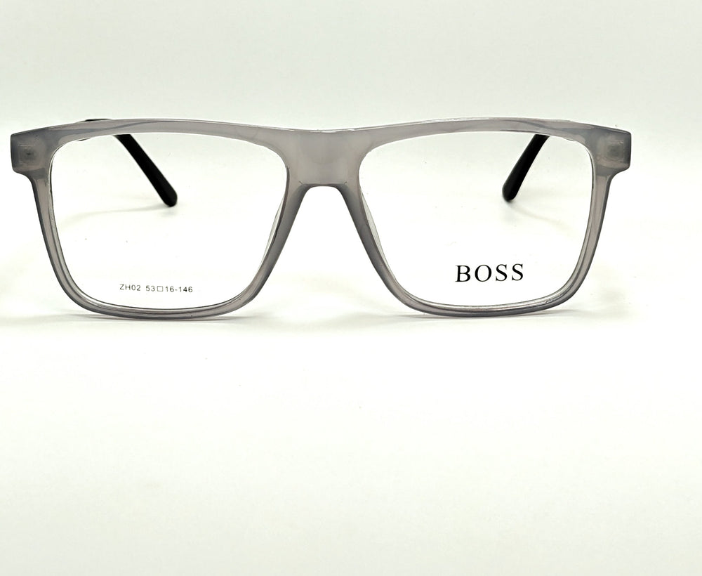 Color: Transparent Grey. Frame Style: Full-rim, square shape. Dimensions: The temple arm shows the measurements as 56-16-145, which typically refers...